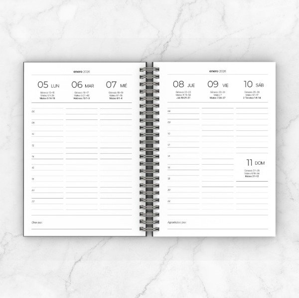 Agenda semana a la vista con referencia para leer la biblia en una año